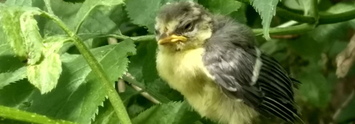 Diese kleine Blaumeise ist auf dem Boden gelandet. Vom Boden zu starten ist noch schwieriger, als mit Unterstützung der Flügel von Ast zu Ast zu kommen. Viele glauben, dass so ein Bruchpilot Hilfe braucht, in aller Regel ist das aber nicht der Fall. Deshalb auf keinen Fall versuchen, den Vogel zu fangen! Die Eltern werden in der Nähe sein und ihren Nachwuchs weiter versorgen. So haben sie viel bessere Überlebenschancen, als wenn sie in menschliche Obhut genommen werden. Nur, wenn auch nach 2- 3 Stunden ohne Störung kein Elternvogel in der Nähe auftauchen, kann es Sinn machen, dem Vogel zu helfen. Bevor man den Kleinen aufnimmt, sollte man Kontakt mit einer Wildtierauffangstation aufnehmen und sich Rat holen, was zu tun ist.