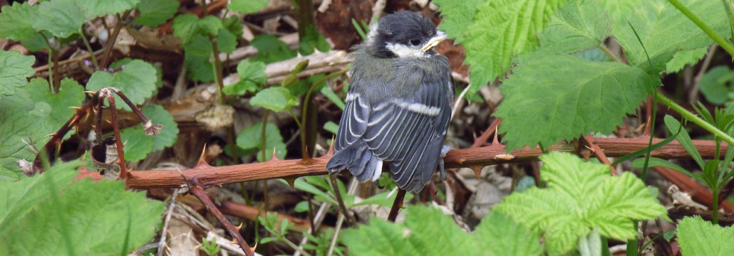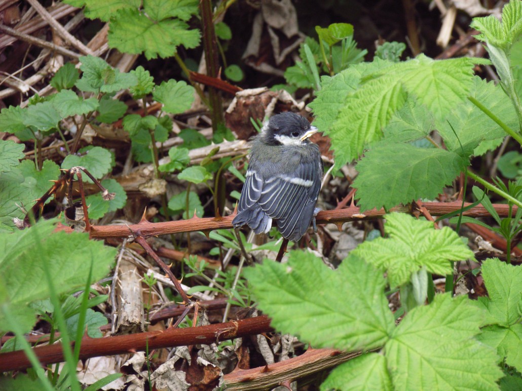 Die ersten Jungvögel sind schon flügge – sie fliegen oft noch recht unbeholfen und haben flauschiges Gefieder wie diese kleine Kohlmeise.