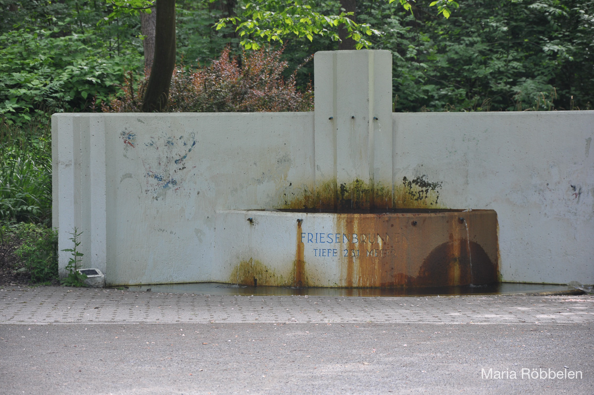 Friesenbrunnen Die Verfärbungen entstehen durch Ausfällungen von Eisenoxid, sobald das Wasser an die Oberfläche kommt.