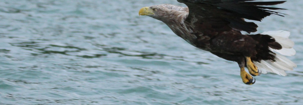 Am 9. Dezember erschien bei herrlichstem Wetter ein ausgewachsener Seeadler über dem Accumer See. Er flog am See vorbei und war dann nur noch an seinen glüh-klüh-klüh-Rufen auszumachen. Kurz darauf erschien er wieder, verfolgt von einer Rabenkrähe, die sich neben ihm sehr klein ausmachte. Er war bei strahlendem Sonnenschein an seinen weißen Schwanzfedern sehr gut als Altvogel zu erkennen.